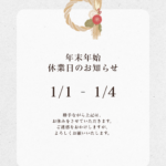 年末年始休業期間中は何かとご迷惑をおかけいたしますが、何卒ご了承のほど、お願い申し上げます。